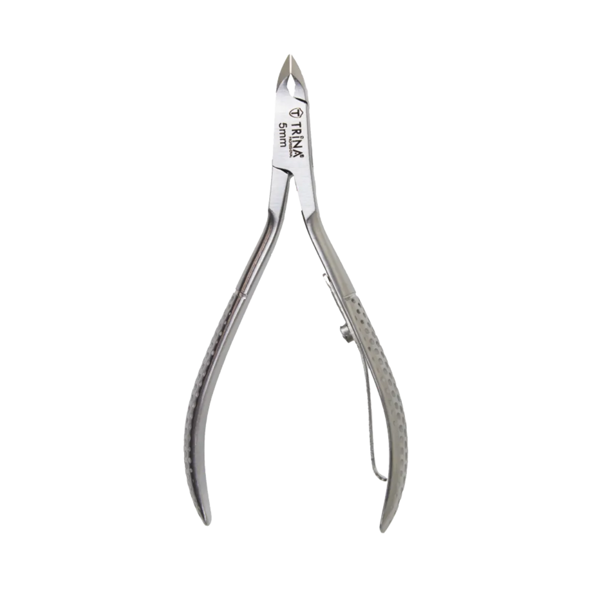 Trina Profesyonel Tırnak Eti Pensi 5 mm, manikür ve pedikür uygulamalarında tırnak etlerini düzgün ve hassas bir şekilde temizlemek için özel olarak tasarlanmıştır. 5 mm'lik kesici ağız uzunluğu sayesinde en ince ve hassas bölgelerde bile rahat ve kontrollü bir kullanım sunar.